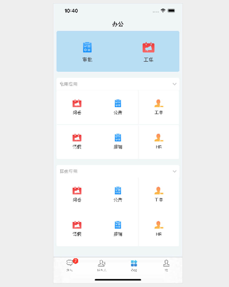 与低代码平台ONEWORKS产品深度结合处理日常待办任务。可扩展:可接入外部HTML5应用。信息安全:文字音视频通讯加密传输。